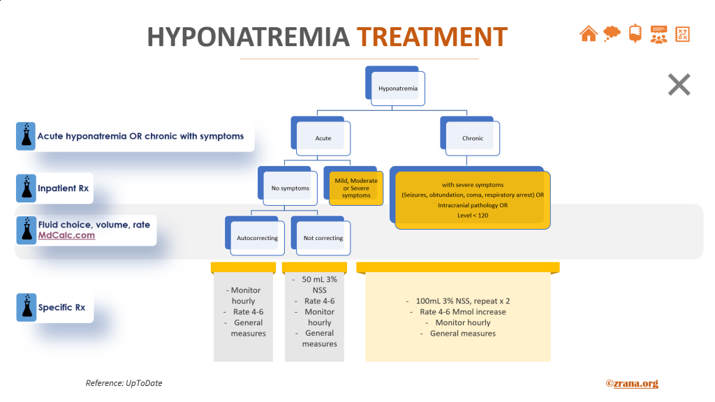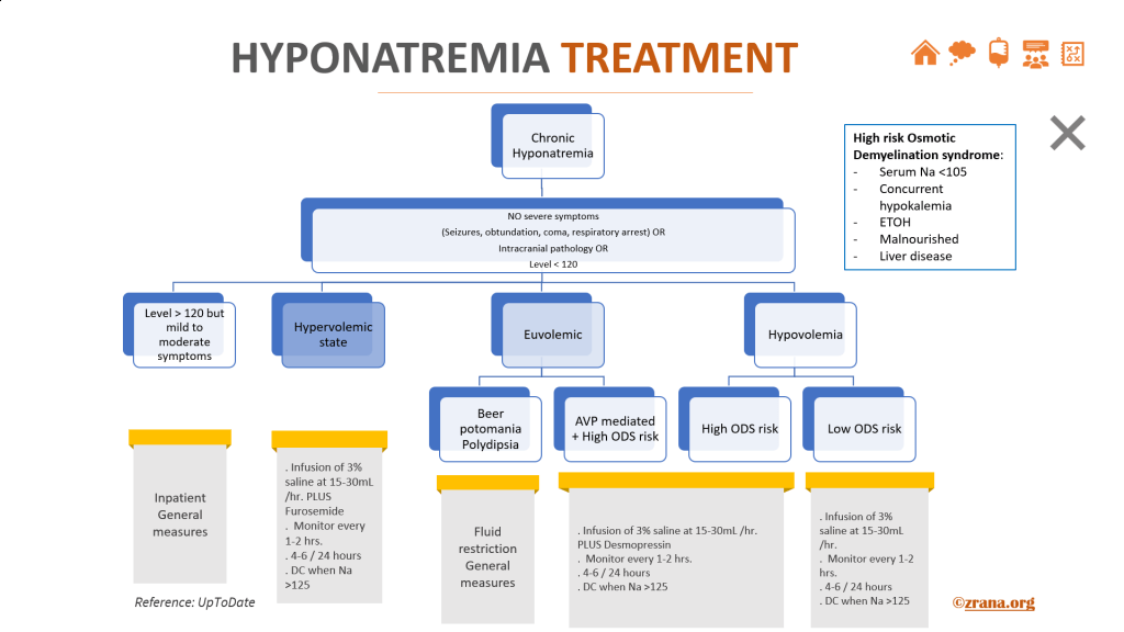 - UpToDate: Overview of the treatment of hyponatremia in adults. Please look at the algorithm.